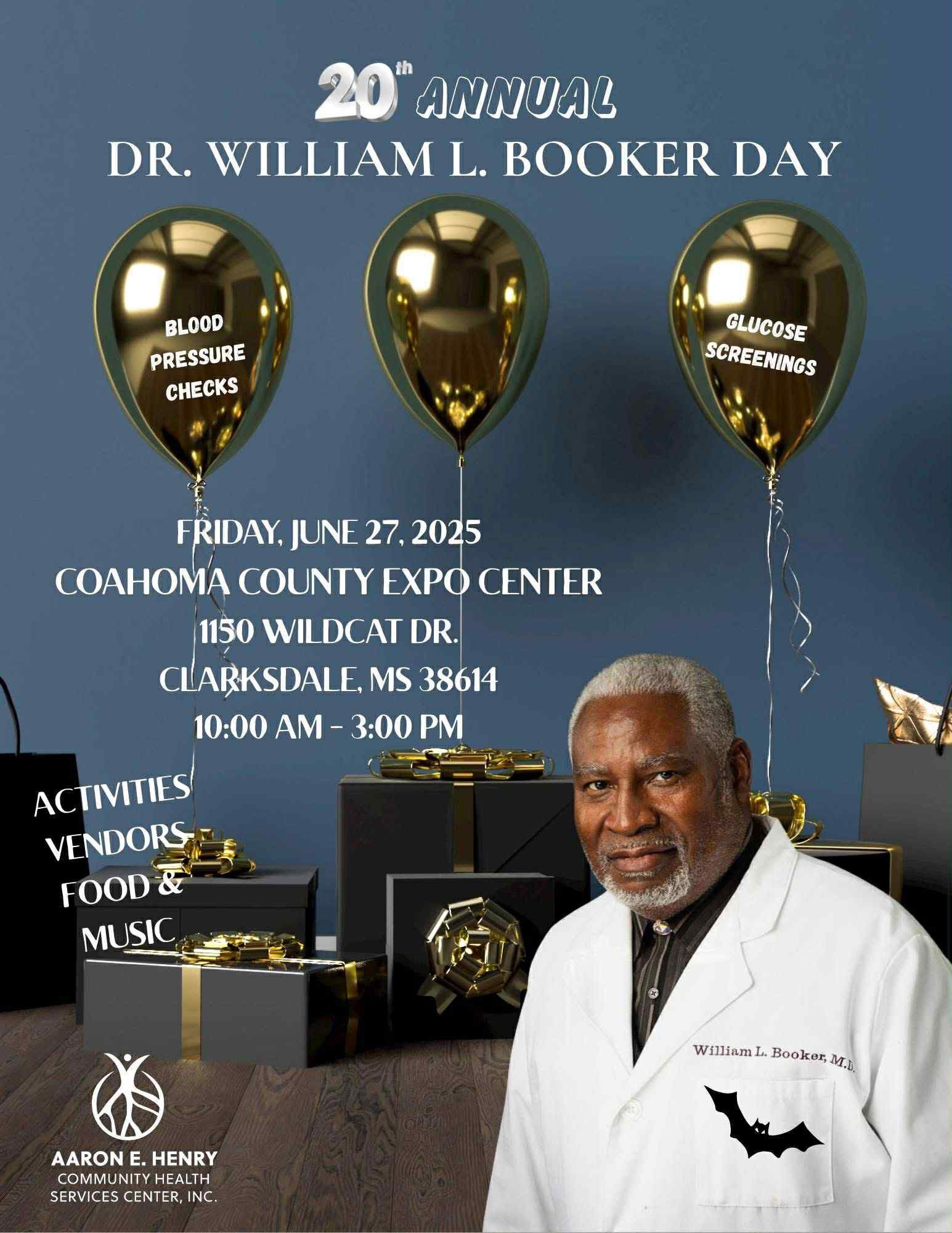 Clarksdale, MS — The community is invited to celebrate a milestone event at the 20th Annual Dr. William L. Booker Day, taking place Friday, June 27, 2025, at the Coahoma County Expo Center, located at 1150 Wildcat Drive in Clarksdale. This beloved event will run from 10:00 a.m. to 3:00 p.m. and is free and open to the public.
