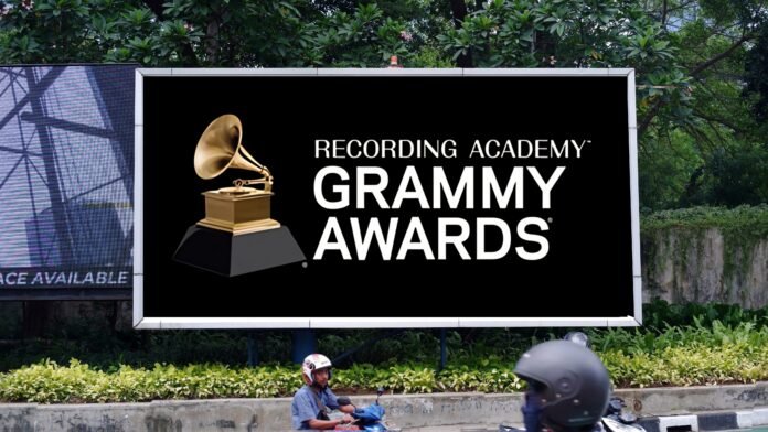 Jakarta, Indonesia - December 27, 2023: RECORDING ACADEMY, GRAMMY AWARDS simply known as GRAMMY advertising seen on billboard