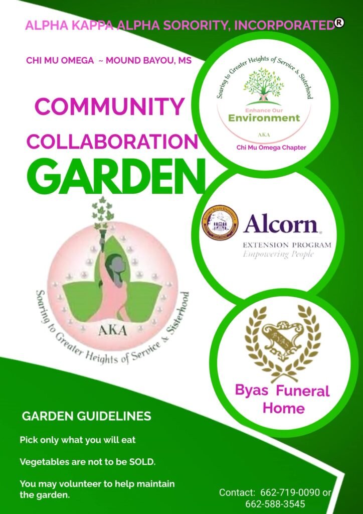 For more information on the community collaboration garden, please call President Griffin at 662-812-7184 or EOE Chairman Morris at 662-719-0090.
