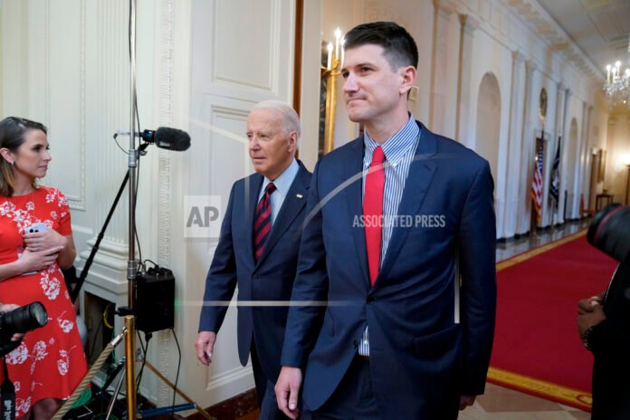Cover Photo: President Joe Biden arrives with Cory Dowd to speak about lowering health care costs, Friday, July 7, 2023, in the East Room of the White House in Washington. (AP Photo/Patrick Semansky)