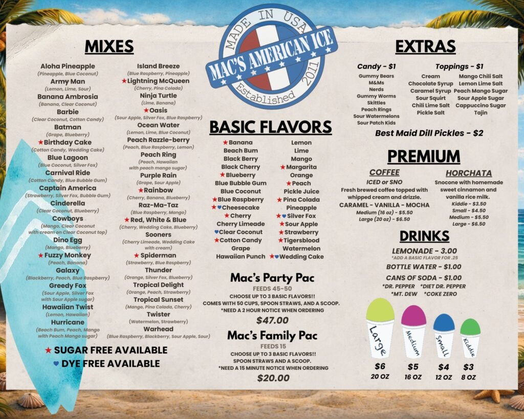 Bryant’s also offers unique options like coffee-infused shaved ice topped with whipped cream and drizzle, as well as refreshing horchata flavors for a creamy, cinnamon-inspired treat. And for larger gatherings, their Party Packs make it easy to share the fun with family and friends.