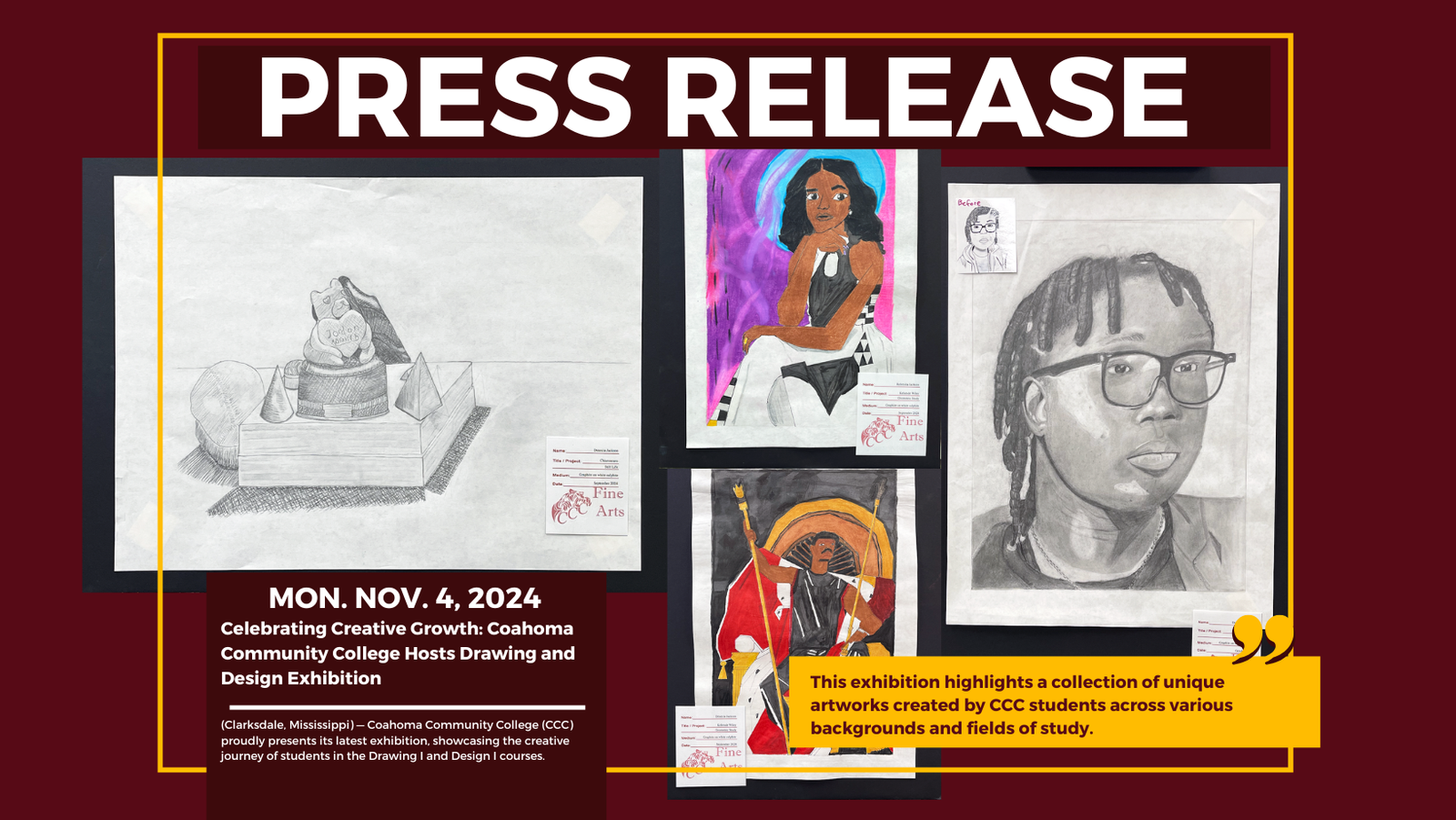 The Drawing and Design exhibition serves as a testament to the transformative power of art education and showcases the boundless potential of students in our community. This exhibit is free and open to the public. Come experience the artistic evolution of CCC’s students as they share their talents with the Coahoma community.