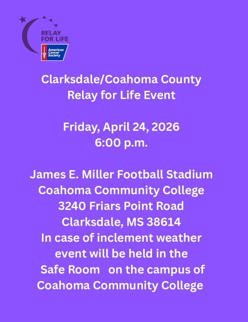 Clarksdale, MS — The community is invited to come together in support of cancer awareness, remembrance, and hope during the upcoming Clarksdale/Coahoma County Relay for Life event, scheduled for Friday, April 24, 2026.