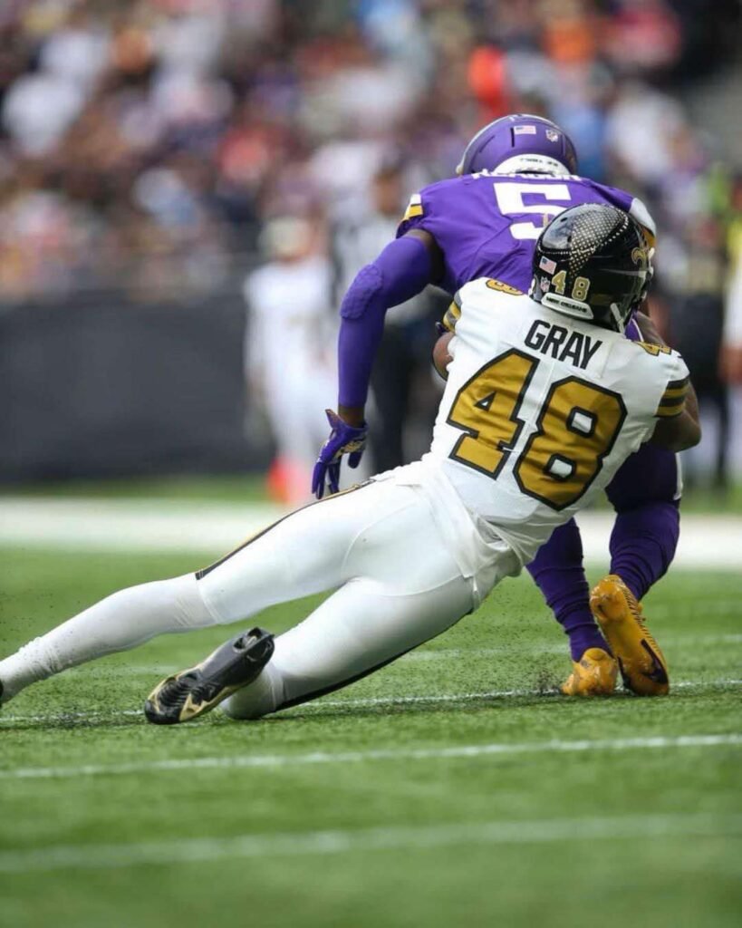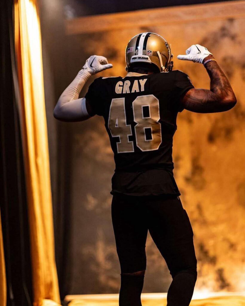 Gray’s journey to becoming one of the league’s premier special teams players began in 2018 when he signed with the New Orleans Saints as an undrafted free agent. Since then, his hard work and relentless play have made him a cornerstone of the Saints’ special teams unit. His teammates have recognized his leadership, voting him special teams captain for four consecutive years.