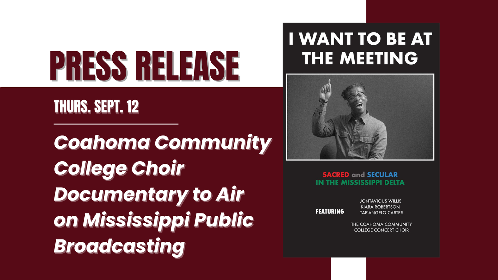 “I Want to Be at the Meeting: Sacred and Secular in the Mississippi Delta” will premiere on Mississippi Public Broadcasting this September. The film showcases Grammy-nominated artist Jontavious Willis, recent Coahoma alum Tae’Angelo Carter, and vocalists from the 2021-2022 Coahoma Community College Choir, delivering a captivating night of gospel performances rooted in the Mississippi Delta. The documentary will air on public television stations across the region, with statewide Mississippi broadcasts on Friday, September 13, at 7:30 pm, and Sunday, September 15, 2024, at 5:00 pm. The local affiliate for this broadcast is WMAO TV, Channel 23.