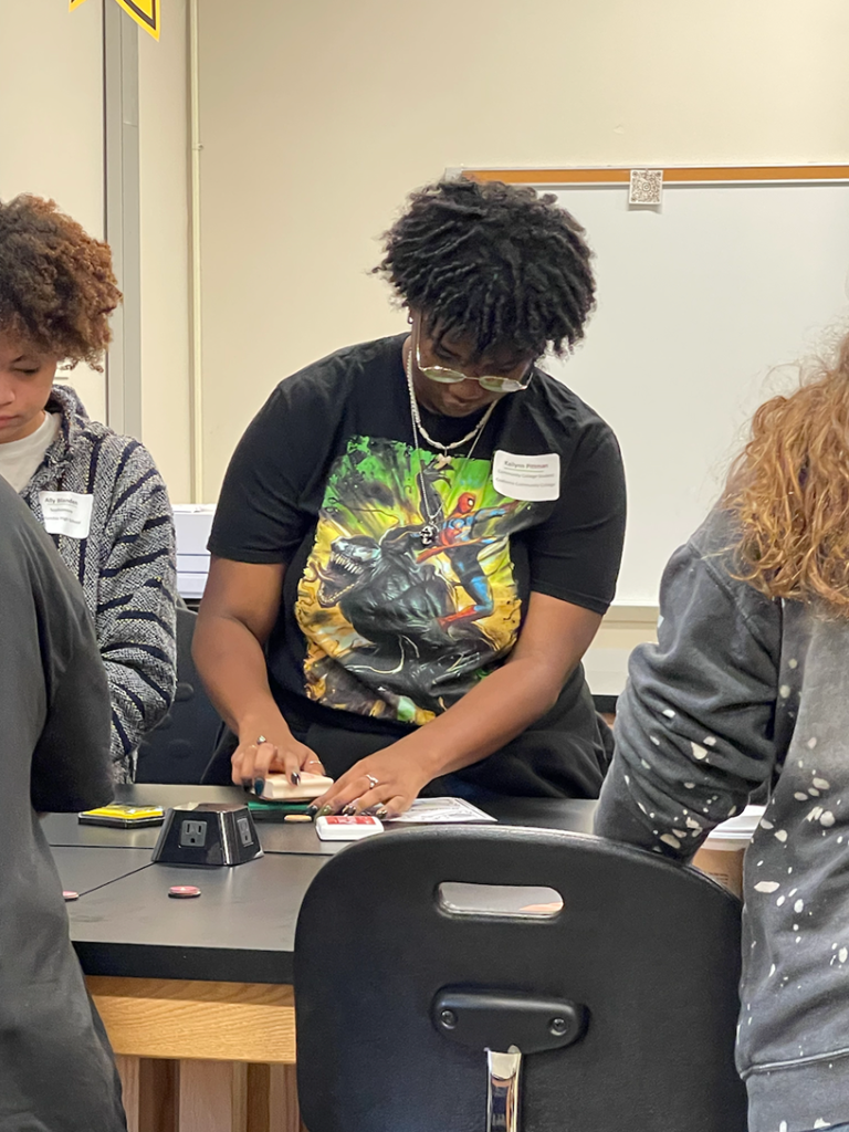 Alongside the engaging activities, CCC students had the opportunity to dive into creative exercises, such as 3D laser etching and gesture drawing. They interacted with accomplished artists like James Meade, a veteran of USM’s Art & Design Department, and Madaline Costella, a Ceramics major who demonstrated clay wheel throwing at the 3D Arts Building.