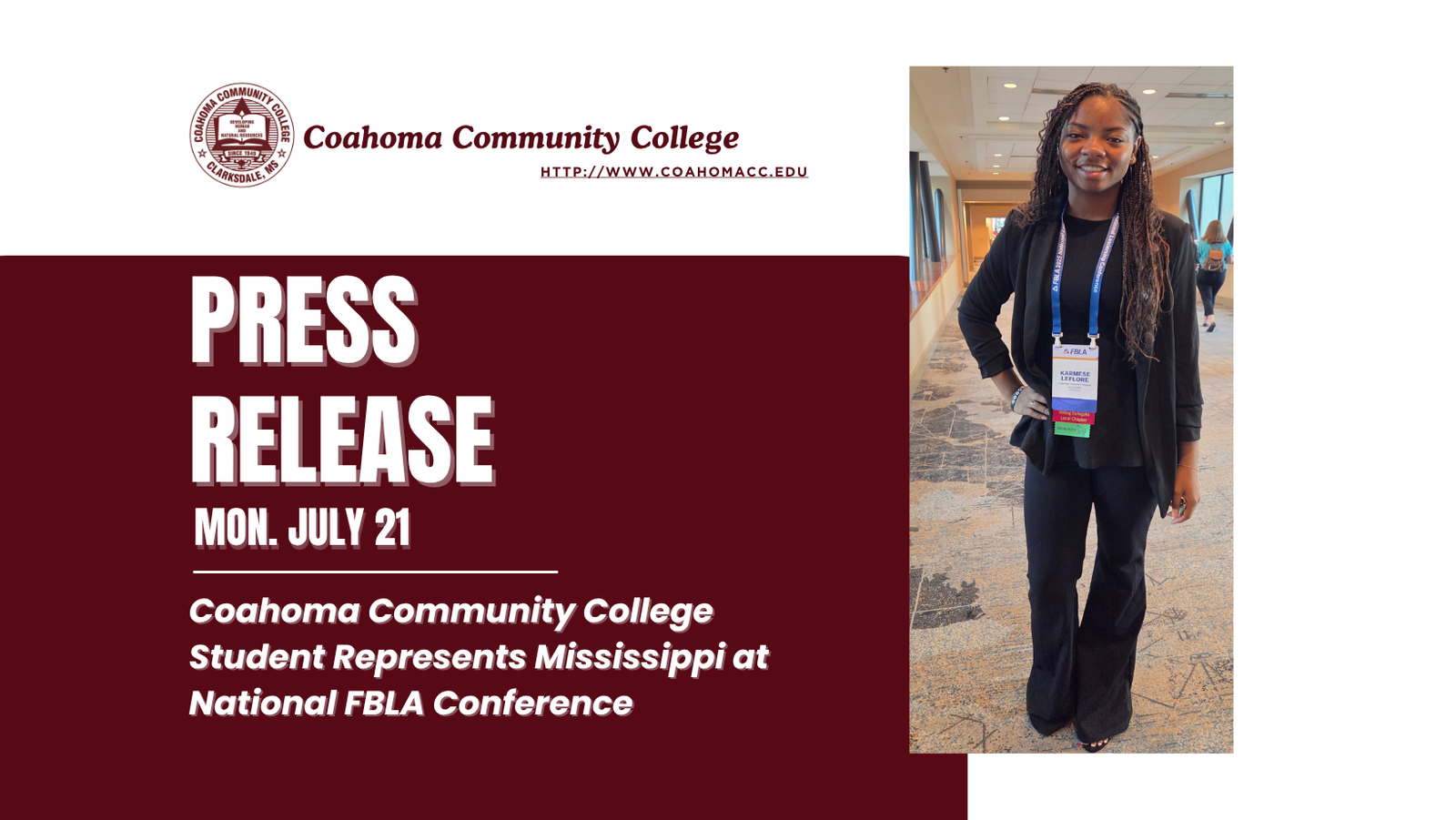 “Karmese is a shining example of what hard work and determination can achieve,” said Kimberly Hollins, FBLA Advisor. “She not only represented Coahoma Community College with pride but also demonstrated the type of leadership and commitment to excellence that FBLA encourages in its members.”