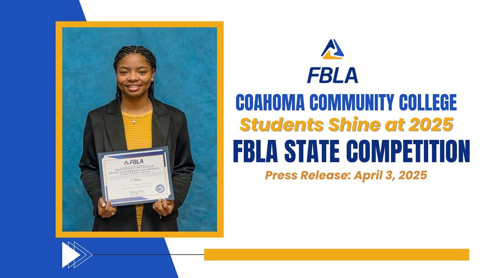 (Clarksdale, Mississippi) – Coahoma Community College proudly announces the remarkable achievements of its students at the Future Business Leaders of America (FBLA) State Competition held from February 26 to 28, 2025, at Mississippi Gulf Coast Community College in Biloxi, Mississippi.