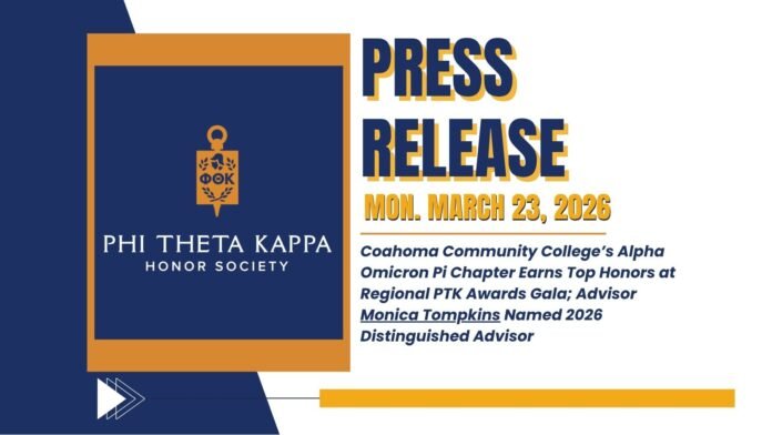 (Clarksdale, Miss.) — Coahoma Community College proudly celebrates the outstanding achievements of its Alpha Omicron Pi Chapter of Phi Theta Kappa Honor Society following an impressive showing at the PTK Mississippi/Louisiana Regional Awards Gala, held March 5–6 at Mississippi State University. Adding to the celebration, chapter advisor Monica Tompkins has been selected as a recipient of Phi Theta Kappa’s 2026 Distinguished Advisor Award, one of the organization’s highest honors recognizing exceptional mentorship and leadership.
