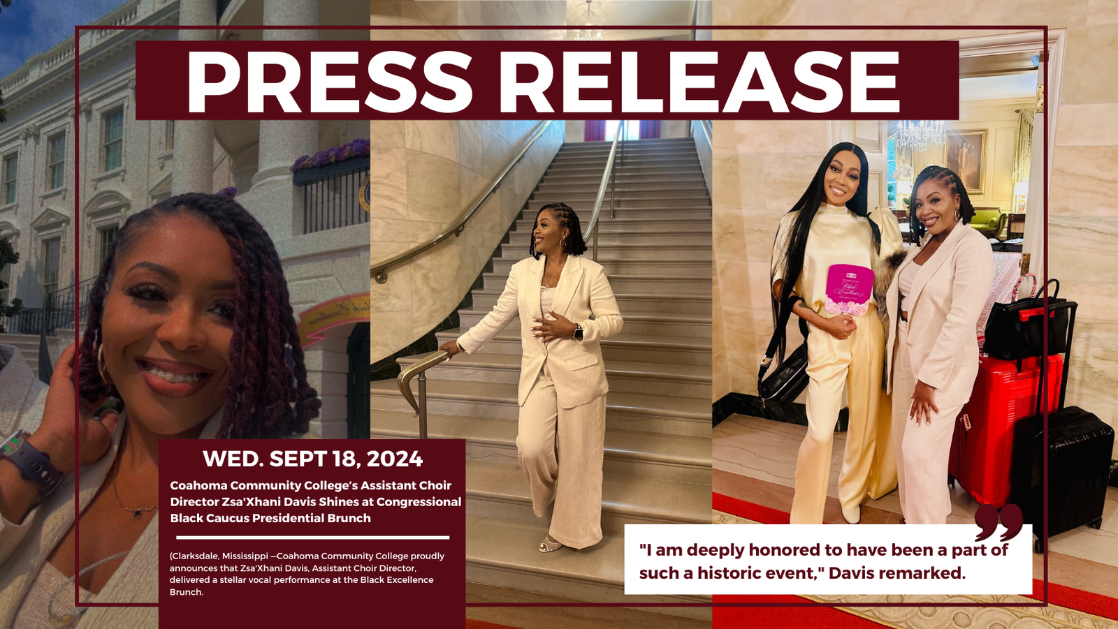 “I am deeply honored to have been a part of such a historic event,” Davis remarked. “Performing at the White House, in front of so many influential figures, is a moment I will cherish forever. It was not just an opportunity to showcase my talent, but also to represent the incredible work we are doing at Coahoma Community College.”
