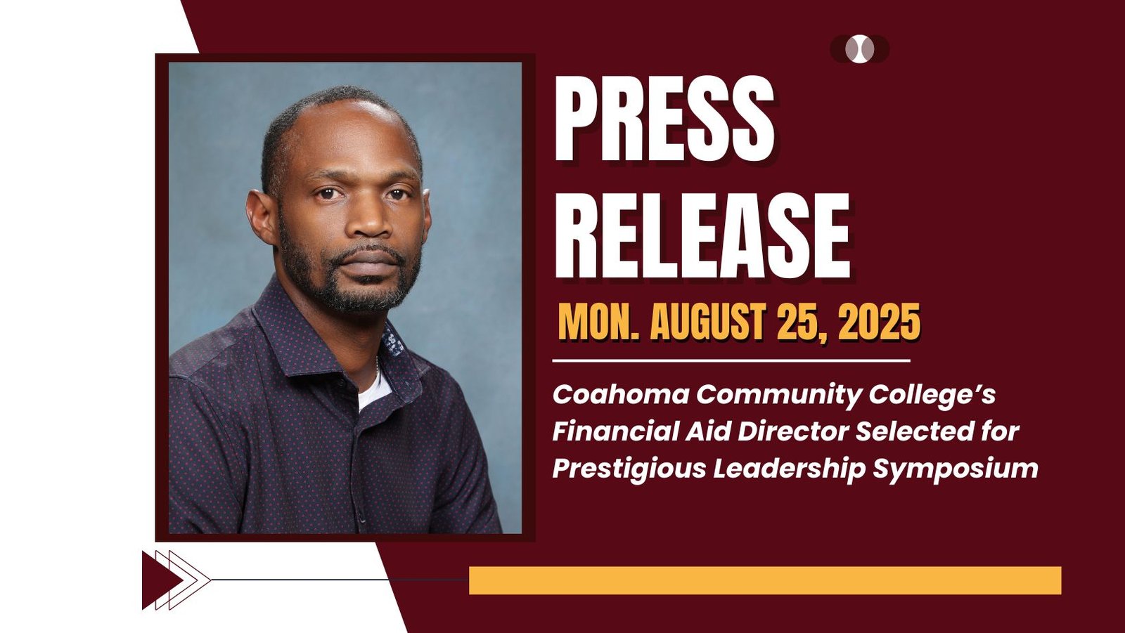 “This is a tremendous honor, not only for me personally, but for Coahoma as well,” said Mr.  McKee. “Being selected for this symposium gives me the opportunity to represent Coahoma on a larger stage, collaborate with colleagues across the South, and bring back innovative ideas that will strengthen our services and support for students.”