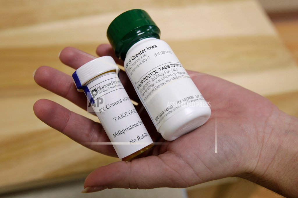 Photo: Bottles of abortion pills mifepristone, left, and misoprostol, right, at a clinic in Des Moines, Iowa, Sept. 22, 2010. A federal appeals court has preserved access to an abortion drug for now but under tighter rules that would allow the drug only to be dispensed up to seven weeks, not 10, and not by mail. (AP Photo/Charlie Neibergall, File)
