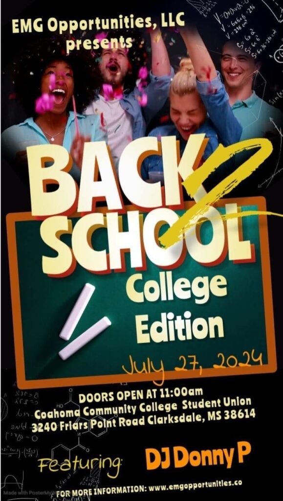 Clarksdale, MS – On July 27th, EMG Opportunities LLC hosted its Back-to-School College Edition event at the Student Union of Coahoma Community College. This initiative, spearheaded by Sherica Griffin, is proof of the company’s dedication to supporting the young adult community and honoring the legacy of Griffin’s mother, Emma Griffin.