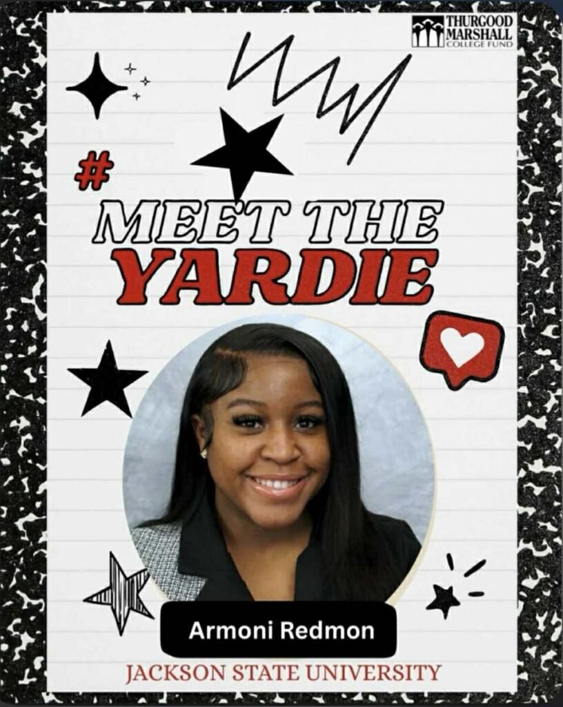 In addition, she represents JSU as a Thurgood Marshall College Fund (TMCF) Yard Ambassador and Influencer—promoting HBCU pride and student engagement across campus and beyond.