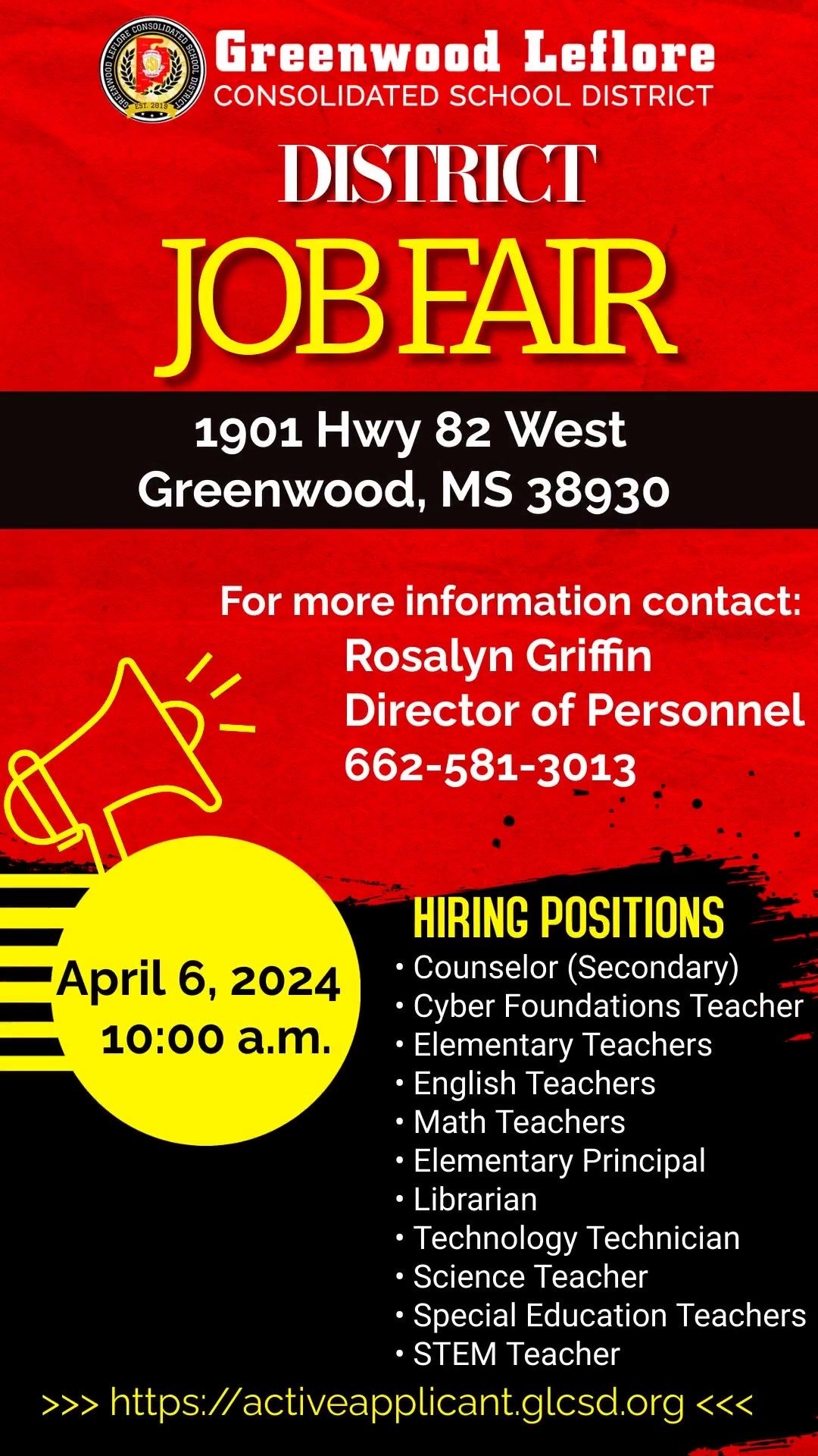 community-events Greenwood Leflore Consolidated School District Job Fair By Ms Delta Advocate - April 2, 2024 0 243 FacebookXPinterestWhatsApp