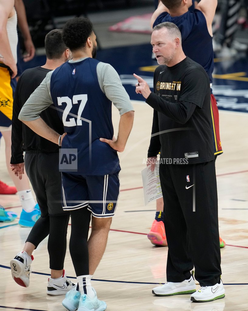 Cover Photo: Denver Nuggets head coach Michael Malone, right, confers with guard Jamal Murray as players take part in NBA basketball practice, Wednesday, May 31, 2023, in Denver. The Warriors take on the Miami Heat in Game 1 of the NBA Finals on Thursday. (AP Photo/David Zalubowski)
