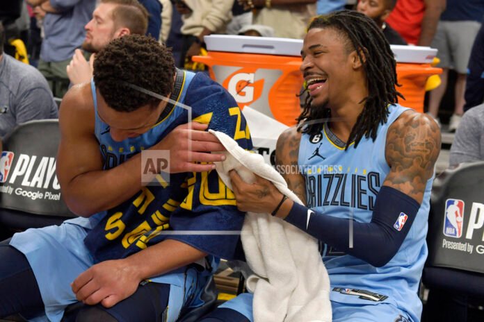 Cover Photo: Memphis Grizzlies guards Desmond Bane, left, and Ja Morant (12) laugh on the bench during the second half of Game 5 of the team’s first-round NBA basketball playoff series against the Los Angeles Lakers on Wednesday, April 26, 2023, in Memphis, Tenn. (AP Photo/Brandon Dill)