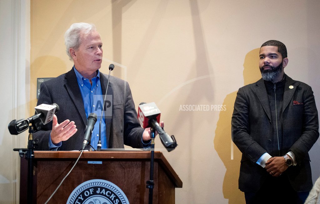 Cover Photo: Ted Henifin, left, the City of Jackson water system third-party administrator, addresses media questions during a news conference at City Hall as Jackson Mayor Chokwe Antar Lumumba listens on Dec. 5, 2022, in Jackson, Miss. Henifin, the manager appointed by the U.S. Department of Justice to oversee reforms to the beleaguered water system in Mississippi’s capital city, says he won’t have enough money to cover expenses until more federal funds arrive. (Barbara Gauntt/The Clarion-Ledger via AP, File)