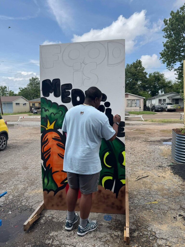 This major renovation effort was orchestrated by Rootswell, an initiative of Partnership for a Healthier America (PHA), that’s lifting up and supporting access to fresh, affordable food in the MS Delta. Support came from a coalition of community-forward organizations including Griot Arts, Northwest Community Foundation, Partnership for a Healthier America, T-Mobile, and the City of Clarksdale.