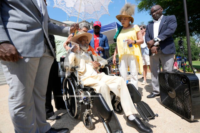 Cover Photo: Political activist and writer James Meredith attempts to address a small assembly after he fell outside the Mississippi Capitol at an event marking his 90th birthday, in Jackson, Miss., Sunday, June 25, 2023. (AP Photo/Rogelio V. Solis)