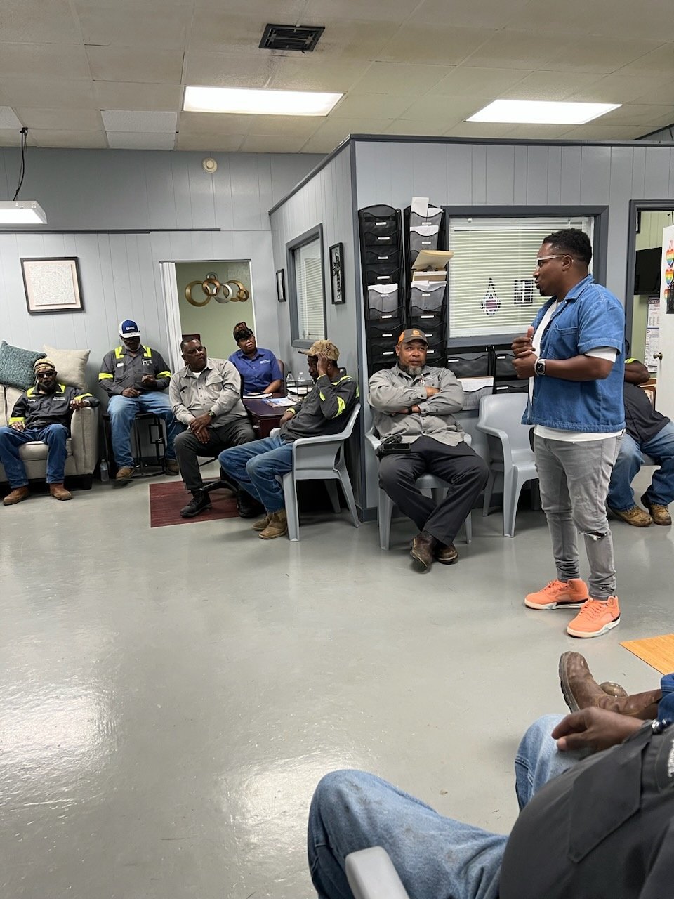 PHOTO CUTLINE: Jacorius Liner is with a focus group at the Coahoma County Road Department