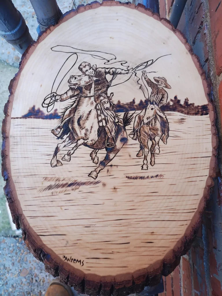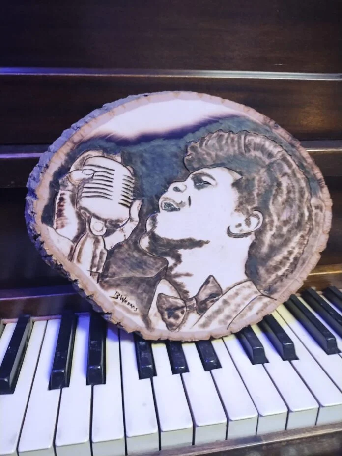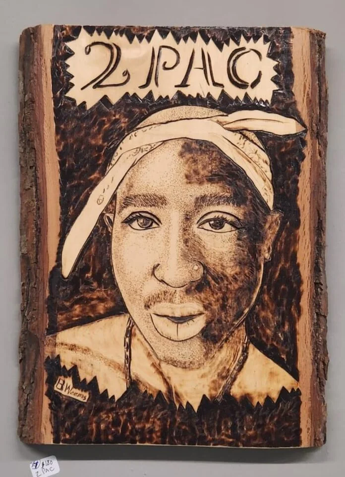 The name “Against the Grain” speaks volumes about Weems’ approach to artistry. He describes himself as a little different, and indeed, his portfolio reflects this mantra. From painting murals to crafting wood sculptures with a chainsaw, Weems defies convention, embracing a wide range of mediums and techniques. His versatility is evident in his ability to seamlessly transition from painting windows murals to creating intricate wood-burning portraits.