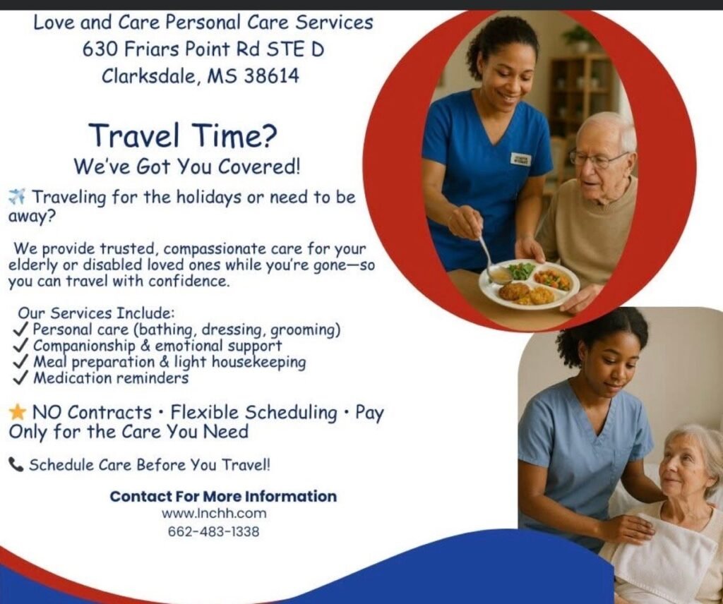 Clarksdale, Mississippi — When families need peace of mind, especially during travel or busy seasons, Love and Care Personal Care Services is there to step in with trusted, compassionate support for elderly and disabled loved ones.