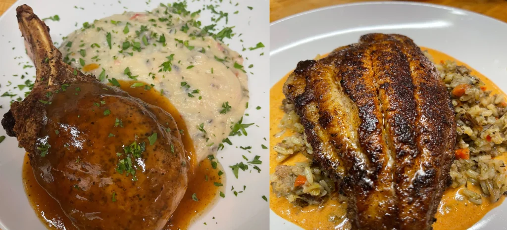 Open for dinner from Wednesday through Sunday, Hooker Grocer + Eatery creates a relaxed southern atmosphere where guests can enjoy a variety of cocktails, including the popular Self Made tequila. The menu includes seafood, prime cuts of meat, burgers, classic sandwiches, and vegetarian options, making it a prime spot for comfort food with a Southern twist.