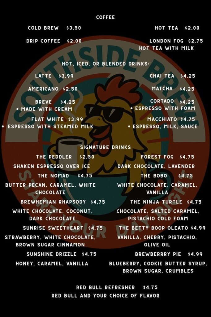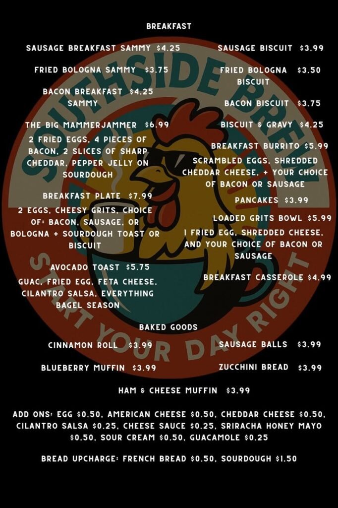 Beyond the food and coffee, the name Southside Brew carries a deeper meaning. The business is inspired by a small local parts store once owned by one of the founder’s fathers. Though the store tragically burned down in the early 2000s, its legacy of going the extra mile for every customer never faded. That same commitment now lives on through Southside Brew, where serving neighbors with care, quality, and pride remains at the heart of everything they do.