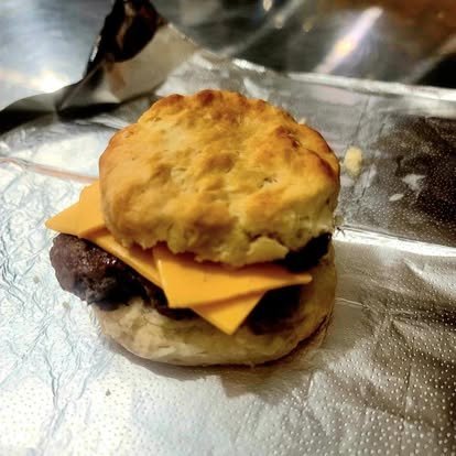 Breakfast offerings are just as memorable. The menu features hearty favorites such as sausage and bacon breakfast sandwiches, biscuits and gravy, pancakes, breakfast burritos, loaded grits bowls, and the popular Big Mammerjammer. Fresh baked goods like cinnamon rolls, muffins, zucchini bread, sausage balls, and ham and cheese muffins round out a menu designed to satisfy early mornings and busy days.