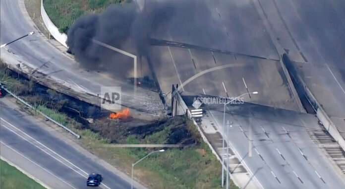 Cover Photo: This screen grab from video provided by WPVI-TV/6ABC shows fire and smoke near the collapsed section of I-95 in Philadelphia, Sunday, June 11, 2023. (WPVI-TV/6ABC via AP)