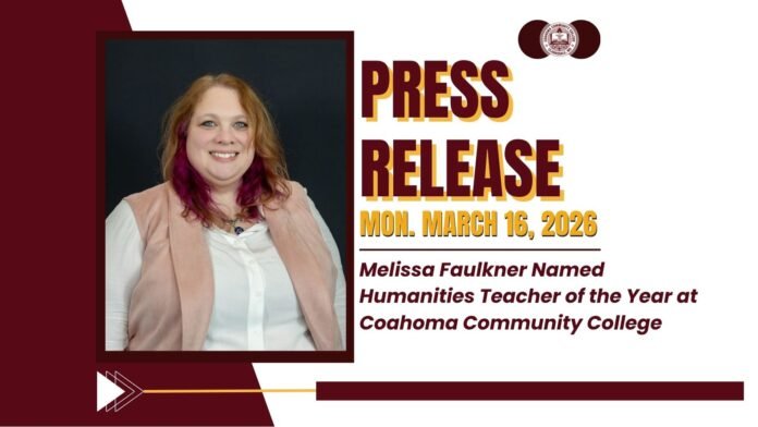 Clarksdale, Miss.) — Melissa Faulkner, English Instructor at Coahoma Community College, has been recognized for her dedication to teaching and student engagement after being named Humanities Teacher of the Year.