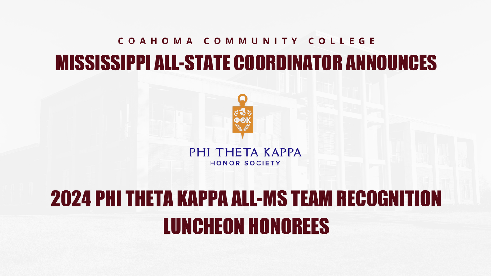 (Clarksdale, Mississippi) – The Mississippi All-State Coordinator for Phi Theta Kappa (PTK) proudly announces the honorees for the 2024 Phi Theta Kappa All-MS Team Recognition Luncheon. This prestigious event aims to celebrate the academic excellence and outstanding achievements of community college students across Mississippi.