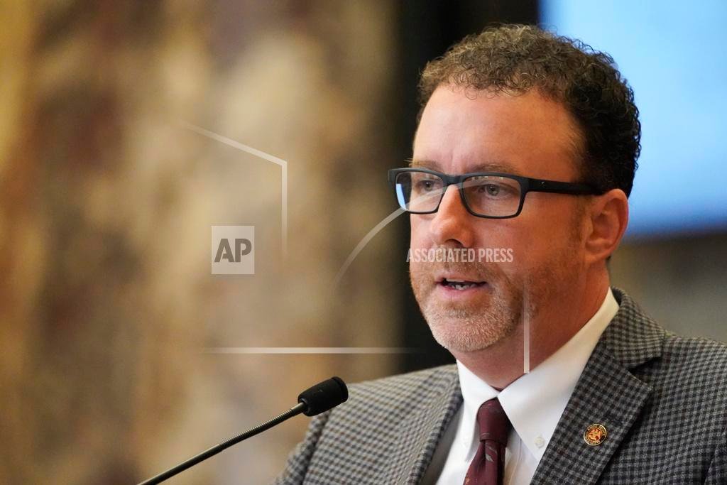 FILE - Mississippi Sen. David Parker, R-Olive Branch, speaks during a debate at the state Capitol, Feb. 7, 2023, in Jackson, Miss. For the second year in a row, the Mississippi Senate has passed a bill that would transfer control of the state capital's troubled water system to a regional board. Parker introduced a slightly modified version of the bill after it died in the House last session. (AP Photo/Rogelio V. Solis, File)