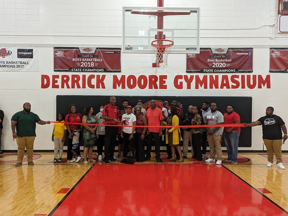 A ribbon-cutting ceremony was recently held in celebration of the Coahoma County Jr./Sr. High School gym being named the Derrick Moore Gymnasium.