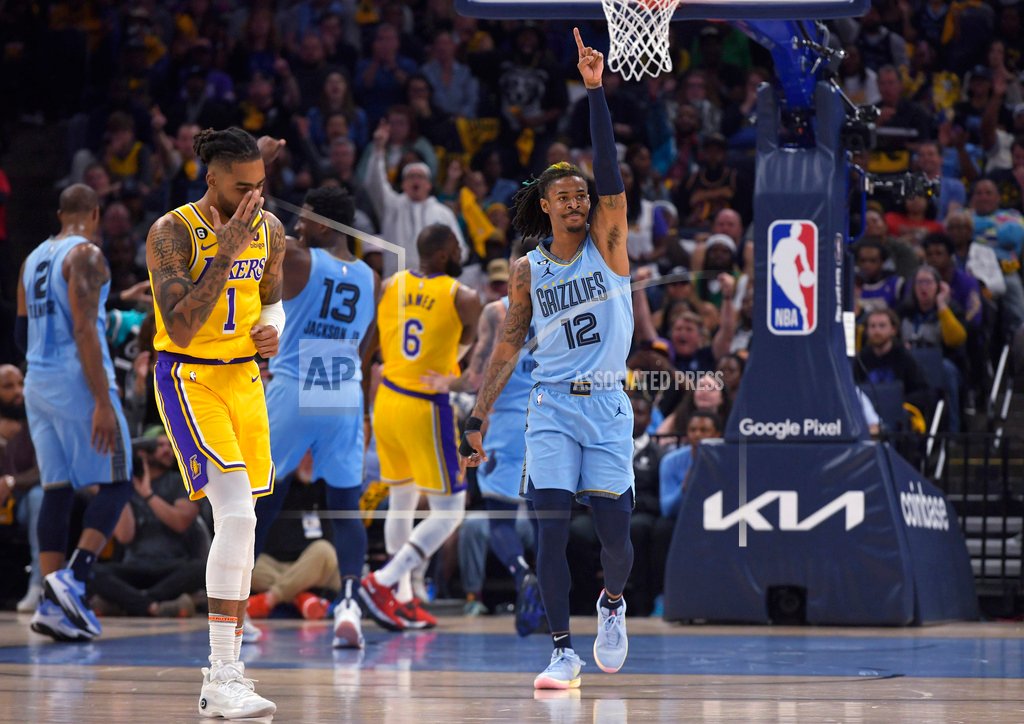 Photo: Memphis Grizzlies guard Ja Morant (12) reacts during the first half of Game 5 of the team’s first-round NBA basketball playoff series against the Los Angeles Lakers on Wednesday, April 26, 2023, in Memphis, Tenn. (AP Photo/Brandon Dill)