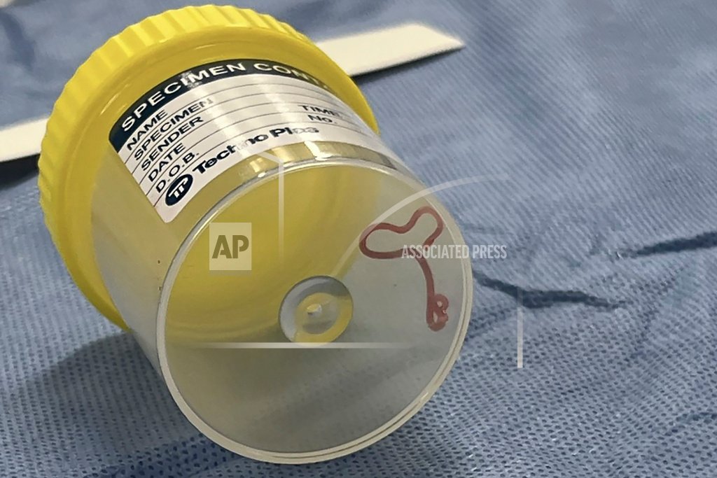 Cover Photo: This undated photo supplied by Canberra Health Services, shows a parasite in a specimen jar at a Canberra hospital in Australia. A neurosurgeon investigating a patient’s mystery neurological symptoms in an Australian hospital has been surprised to pluck a 3-inch wriggling worm from her brain. (Canberra Health Services via AP)