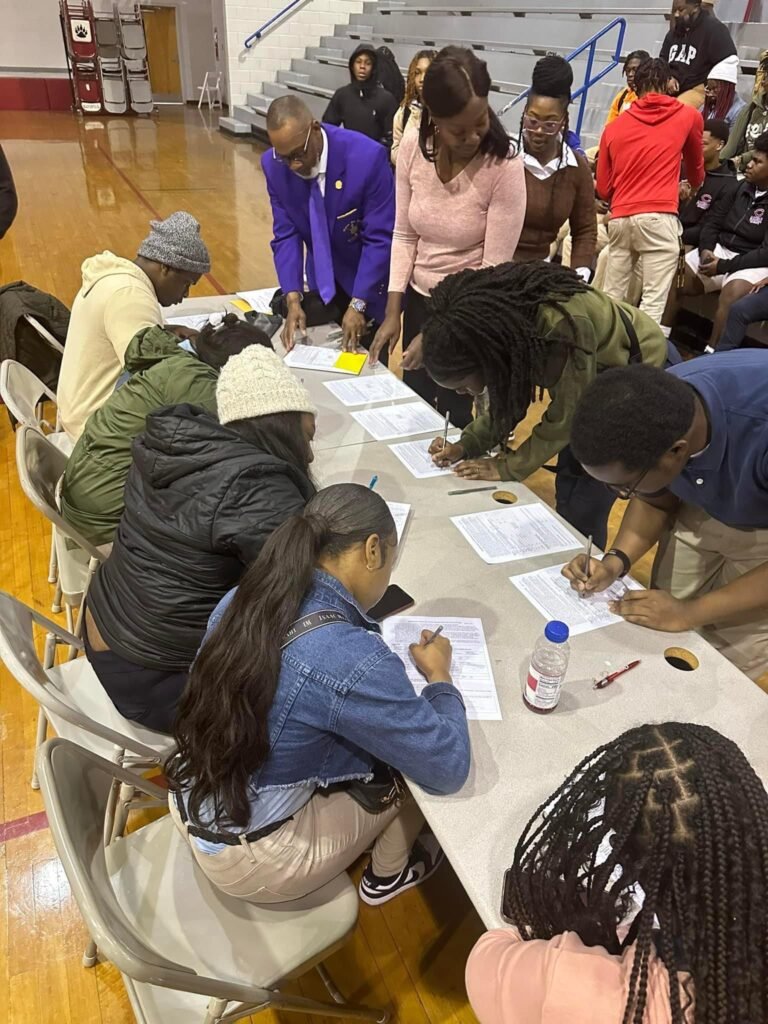Clarksdale, Mississippi – On Wednesday, March 20, 2023, Omega Psi Phi Fraternity, Inc., hosted a ‘Let’s Talk Politics and Voter Registration Drive’ at Clarksdale High School. The fraternity partnered with the Clarksdale High School history department to give students the opportunity to register to vote and have a Q&A session about politics.