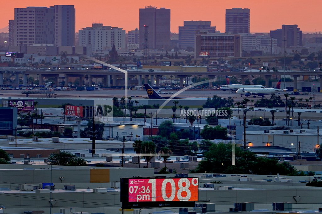 Cover Photo: A sign displays the temperature as jets taxi at Sky Harbor International Airport at dusk, Wednesday, July 12, 2023 in Phoenix. Millions of people around the Southwest are living through a historic heat wave. Even the heat-experienced desert city of Phoenix is being tested Wednesday as temperatures hit 110 degrees Fahrenheit for more than a dozen consecutive days. Phoenix is currently America’s hottest large city with temperatures forecast to hit as high as 119 degrees Fahrenheit over the weekend. (AP Photo/Matt York)
