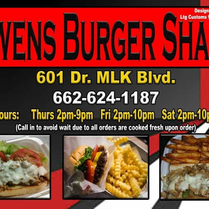business-directory Owens Burger Shack By Ms Delta Advocate - February 9, 2024 0 540 FacebookTwitterPinterestWhatsApp Owens Burger Shack Address: 601 Dr M.L.K. Jr. Blvd, Clarksdale, MS 38614 Phone: (662) 624-1187