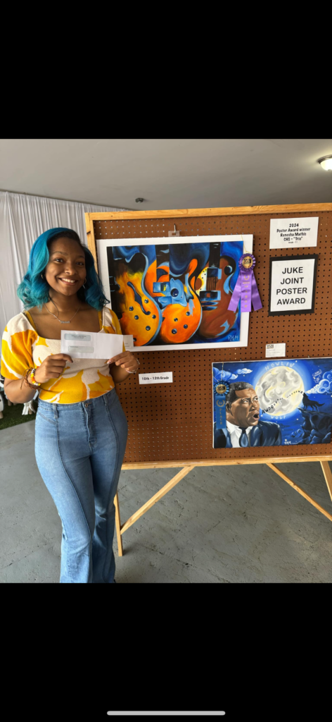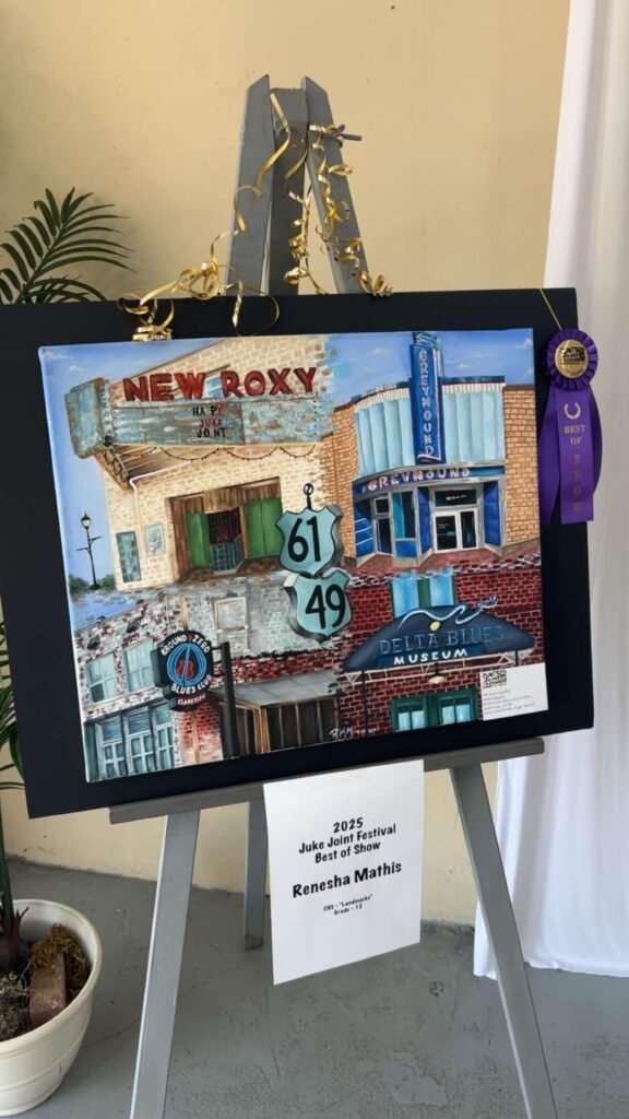 Clarksdale, Mississippi – Clarksdale, MS – A remarkable piece of artwork has captured the spirit of the Mississippi Delta and earned top honors at this year’s Juke Joint Festival. Renesha Mathis, a talented student artist, was awarded the prestigious “Best of Show” title for her entry titled “Landmarks” during the 2025 Juke Joint Festival Art Show.
