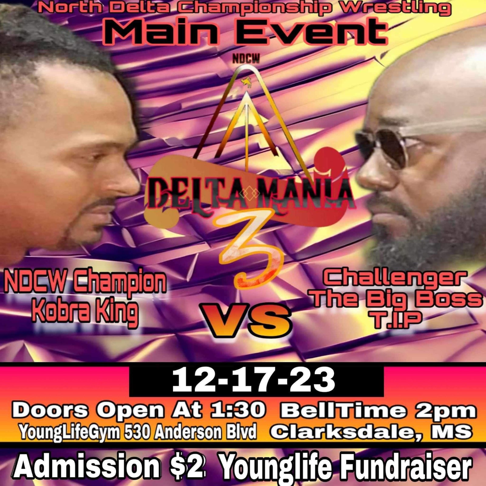 As the wrestling world turns its attention to Clarksdale, Mississippi, for Delta Mania, anticipation is reaching a crescendo. Kobra King and The Big Boss, TIP is poised to deliver a leading event for all ages, showcasing the heart, skill, and determination that define NDCW. Save the date, secure your $2 ticket, and join the crowd at the Young LifeGym on December 17th for an unforgettable afternoon of body slams, high-flying action, and the crowning of the undisputed champion. The countdown to Delta Mania has begun – don’t miss out on the thrill!