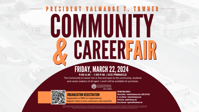 Clarksdale, Mississippi – The annual President Valmadge T. Towner Community & Career Fair is scheduled for Friday, March 22, 2024, from 9:00 a.m. to 1:00 p.m. at the Pinnacle. Over 50 organizations will convene at Coahoma Community College campus for this event.