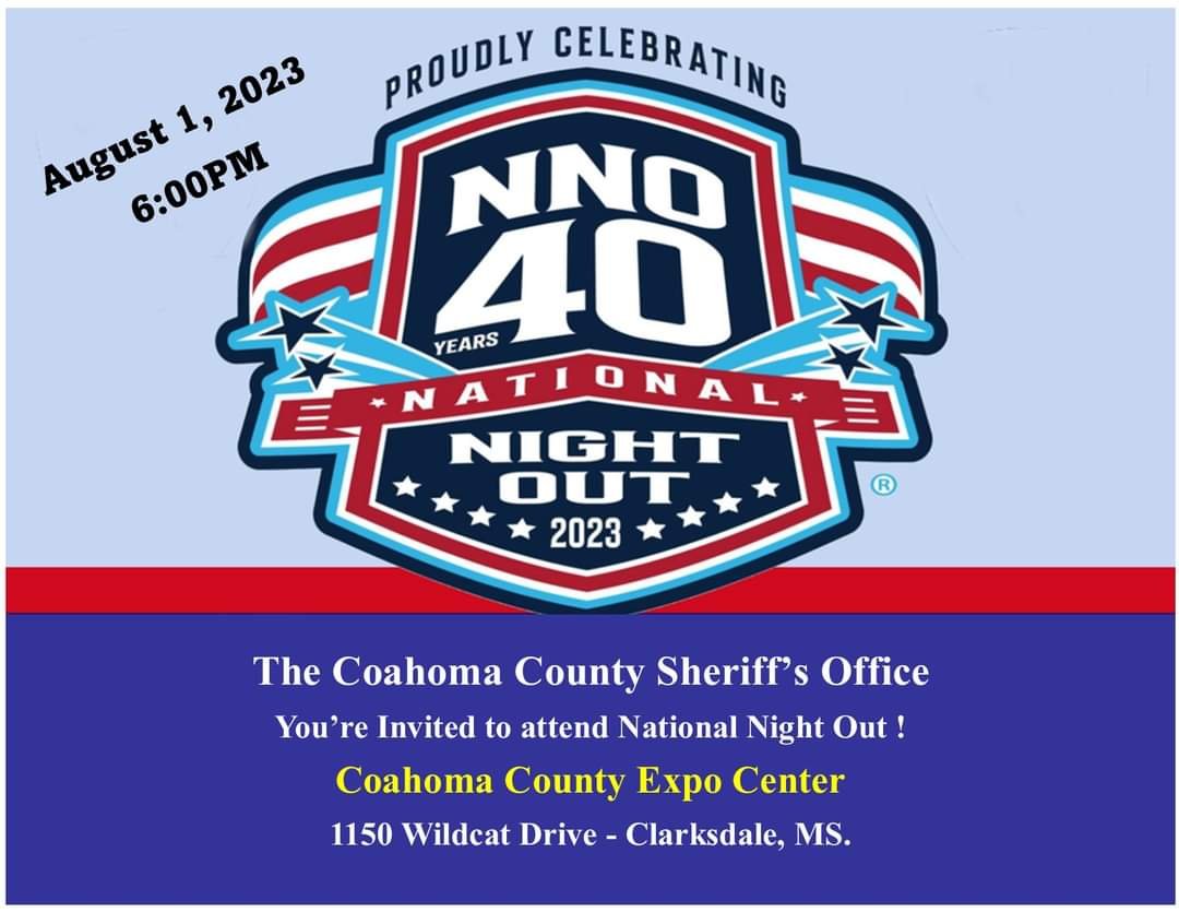 The Coahoma County Sheriff’s Office National Night Out event is scheduled from 6 to 8 p.m. on August 1 at the Coahoma County Expo Center.