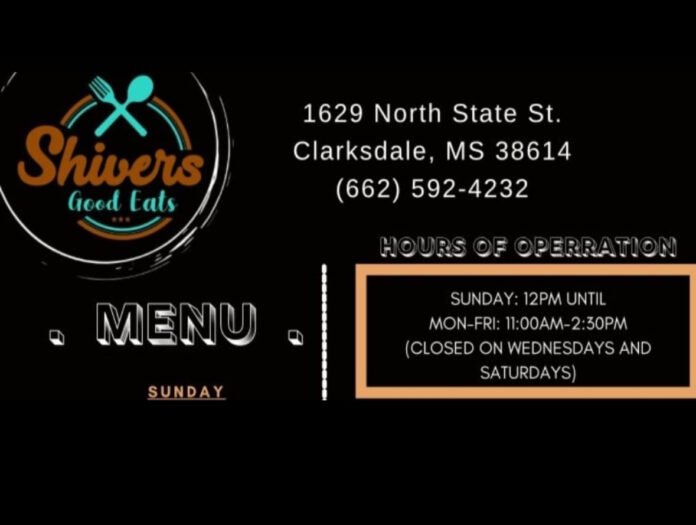 business-directory Shivers Good Eats By Ms Delta Advocate - January 11, 2024 0 444 FacebookTwitterPinterestWhatsApp 1629 North State St. Clarksdale, Ms. 38614 Phone: 662.592.4232