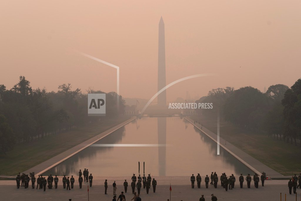 Cover Photo: With the Washington Monument in the background and a thick layer of smoke, Marine Corps honor color guard rehearse, Thursday, June 8, 2023, in Washington. Intense Canadian wildfires are blanketing the northeastern U.S. in a dystopian haze, turning the air acrid, the sky yellowish gray and prompting warnings for vulnerable populations to stay inside. (AP Photo/Jose Luis Magana)