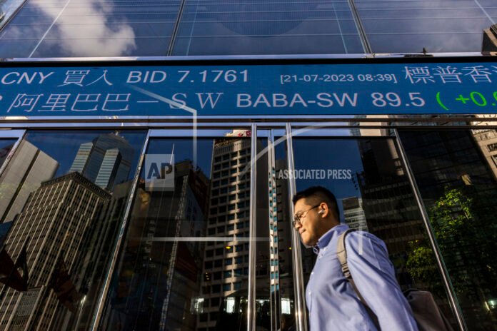 Cover Photo: A pedestrian passes by the Hong Kong Stock Exchange electronic screen in Hong Kong, Friday, July 21, 2023. Shares were mixed Friday in Asia after the latest rally on Wall Street fizzled, with big declines for Tesla, Netflix and other big tech-oriented stocks. (AP Photo/Louise Delmotte)