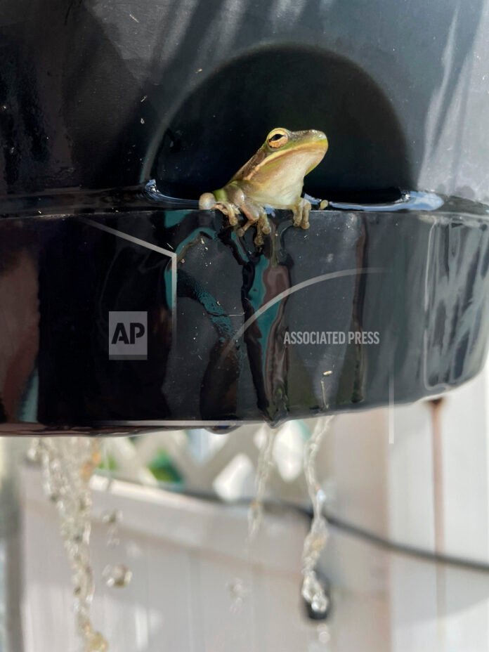 Cover Photo: A tiny frog sits in the bottom of a hanging planter as it is watered during an extended heat wave in Harahan, La., Sunday, Aug. 20, 2023. (AP Photo/Gerald Herbert)