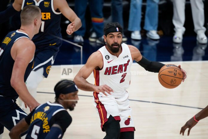 Cover Photo: Miami Heat guard Gabe Vincent (2) moves the ball against the Denver Nuggets during the first half of Game 2 of basketball’s NBA Finals, Sunday, June 4, 2023, in Denver. (AP Photo/David Zalubowski)