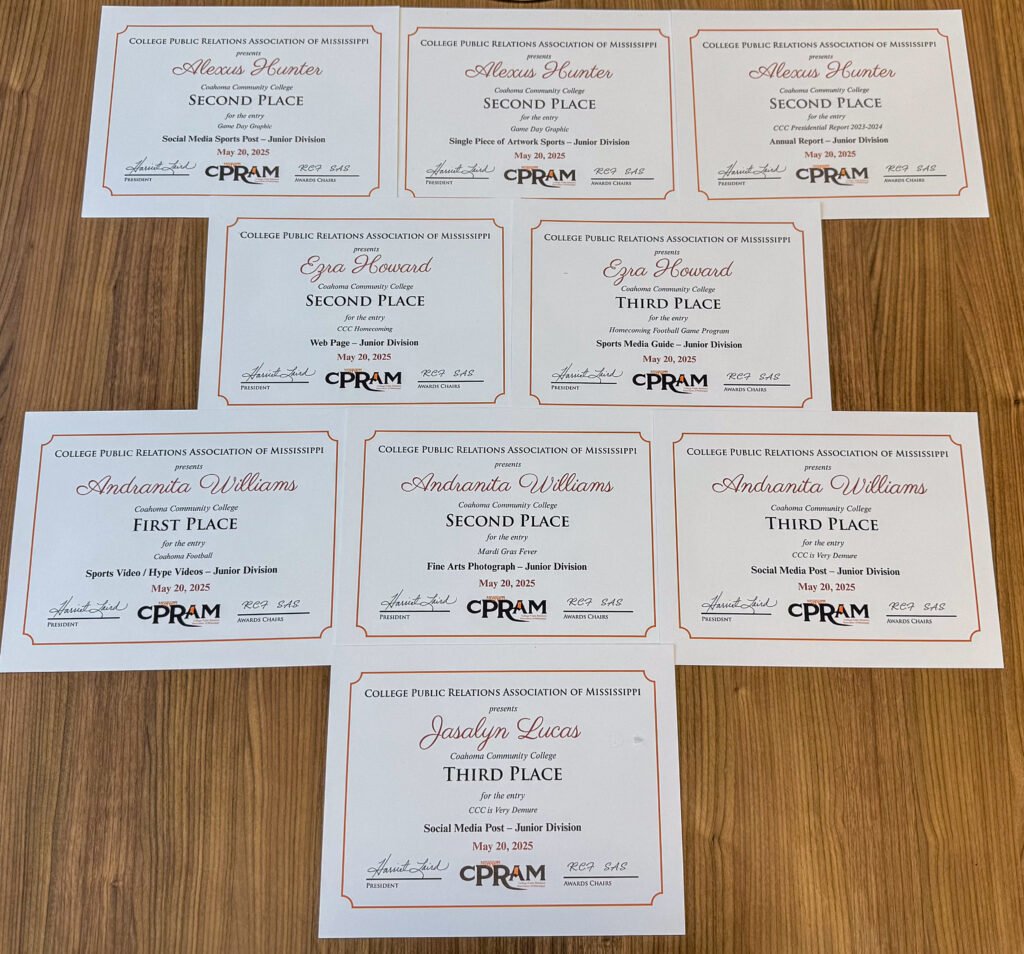 Coahoma Community College competed against colleges from across the state of Mississippi at this year’s CPRAM Conference. Despite our size, we continue to deliver high-quality work in areas such as sports graphics, annual reports, video production, and web content. These honors reflect our commitment to excellence and our role in elevating the voice and brand of Coahoma Community College.